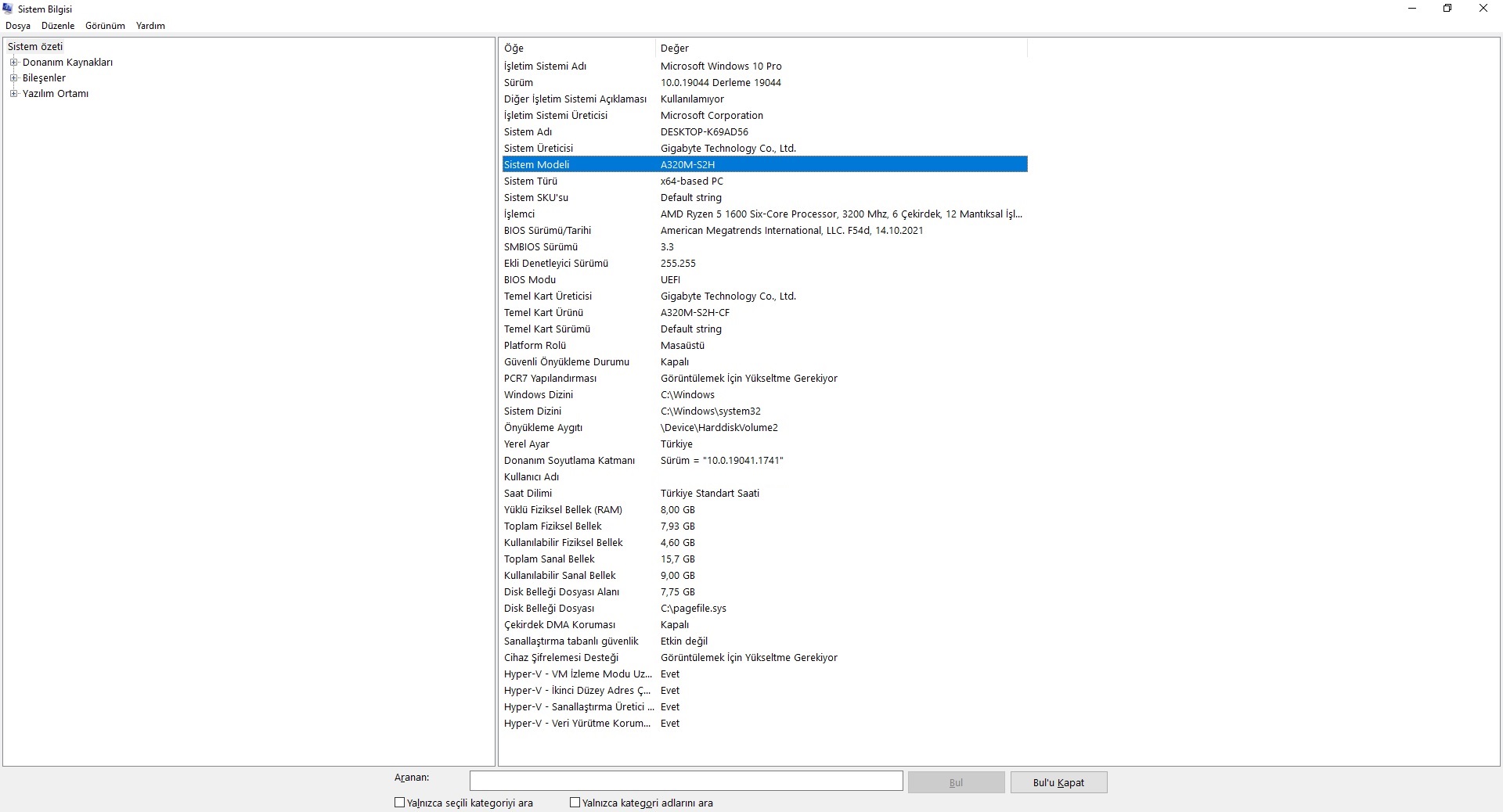 - Sonra yan tarafta Sistem modeli kısmını bulun. Yan tarafında sizin anakart model numaranız yazacaktır.